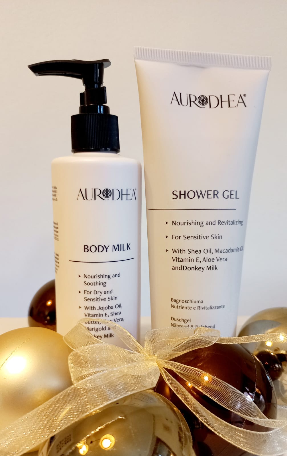 Das Aurodhea Duschgel mit Eselsmilch ist ein echtes Schönheits- und Wohlfühlritual. Bei täglicher Anwendung bringt das Duschgel den Hydrolipidmantel der Haut wieder ins Gleichgewicht: Es schützt die Haut nicht nur, sondern macht sie auch unwiderstehlich geschmeidig und angenehm duftend. Eselsmilch, wegen ihrer wertvollen Eigenschaften auch als „weißes Gold“ genannt, ist reich an Fettsäuren (Omega 3 und 6) und an den Vitaminen A, B, C, D und E. Angereichert mit Sheaöl und Aloe Vera wirkt das Duschgel intensiv feuchtigkeitsspendend und nährend – auch für sehr empfindliche und anspruchsvolle Haut. Die Formel ist zudem mit Macadamiaöl angereichert, das eine rückfettende Wirkung hat.